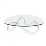 Fusing the sophistication of acrylic with a dramatic curvilinear shape and undulating base, the Westin Wave Grand Cocktail Table brings elegance to an organic form.