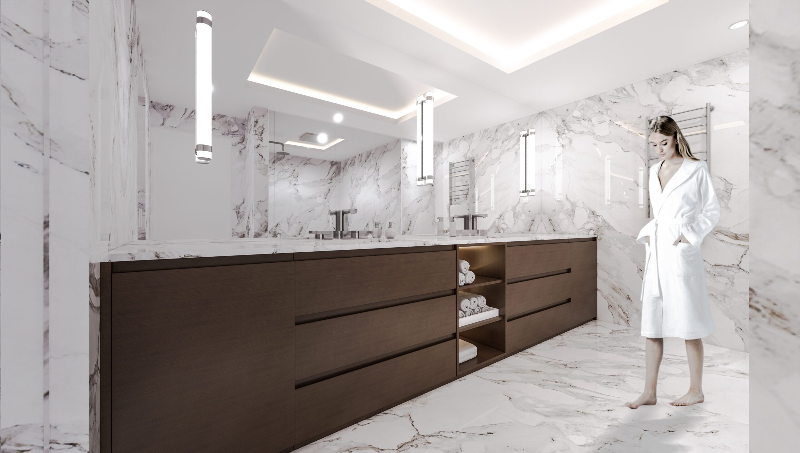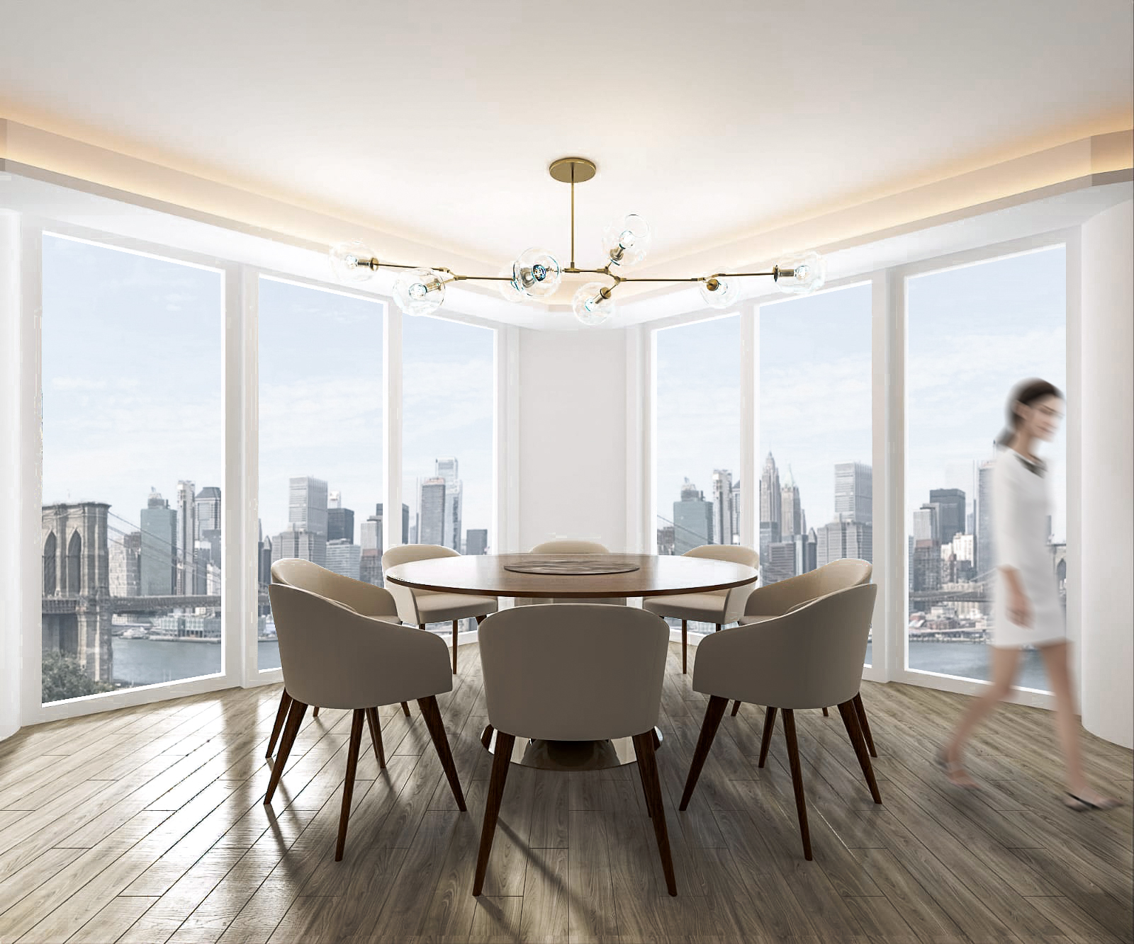 The client wanted a soothing and lively interior space. We began with a color palette of neutral wood tone in all spaces to keep the rooms soft and pronounced. We curated each space to display a beautiful balance of visual elements through colors and contrasting textures. Moreover, we added black and cream furniture and fabrics with pale walnut wood to provide a contemporary edge to the space. To make the dining space integrate seamlessly with the fabrics and wooden texture, an opulent lighting fixture with a striking metal accent was introduced which also exhibits a lush look. The vision to create a timeless contemporary interior environment is achieved by use of minimal classical elements and texture in this stunning interior space.